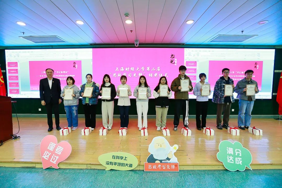 为推动探索思考“如何讲好思政课”“如何上好思政课”“如何用好思政课考评成绩”,学校连续第二年开展“思政学习先锋”评选活动。许涛书记为十名获奖学生颁奖,并将上海财经大学马克思主义学院组织编译、上海财经大学出版社出版的《马克思主义政治经济学译丛》作为奖品。