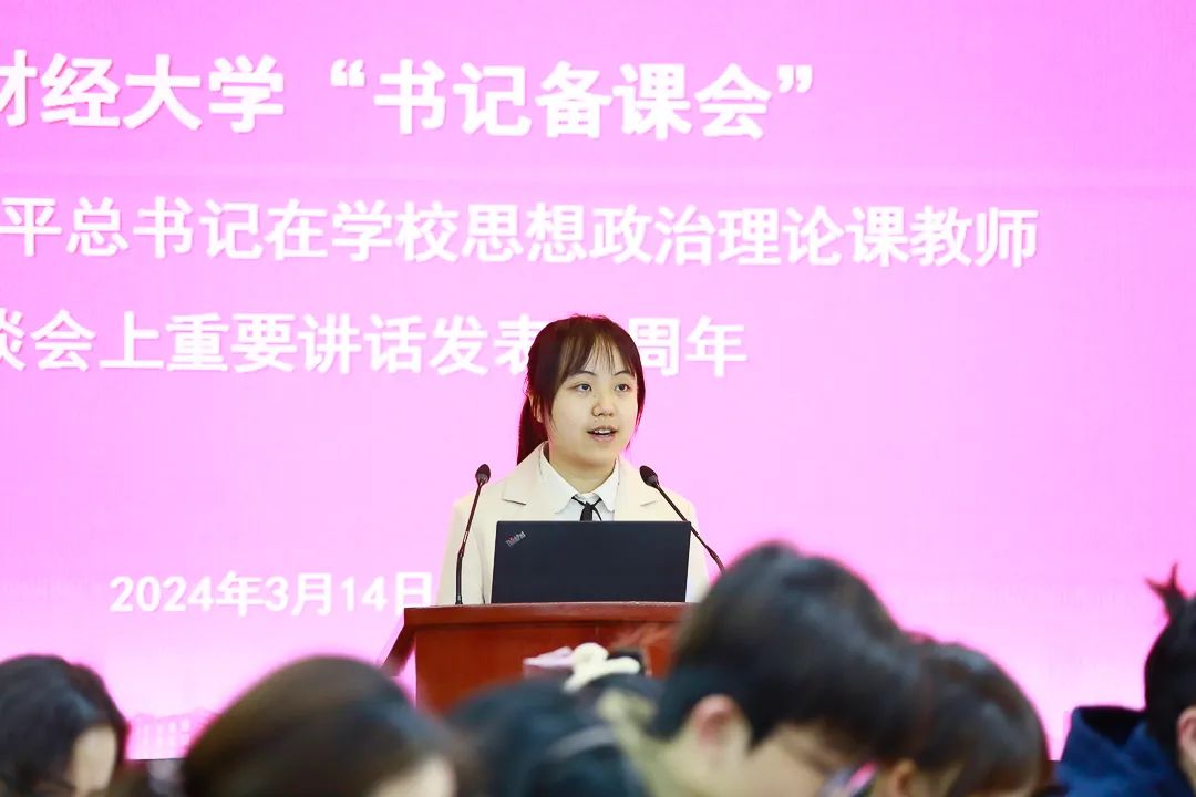 公共经济与管理学院2021级投资学申尧懿作为学生代表发言,她表示自己在过去几年里一直以学校“开学第一课”作为起点,结合思政课的学习,深入了解了国家发展的需要,也基于此树立起了人生奋斗的目标。