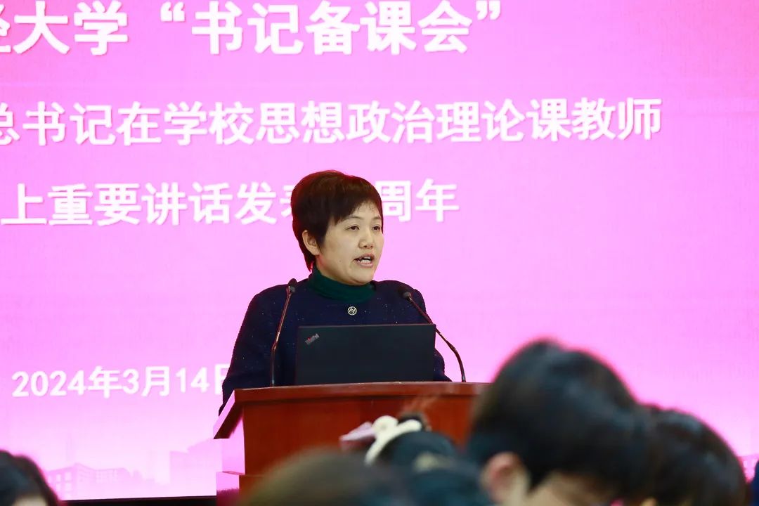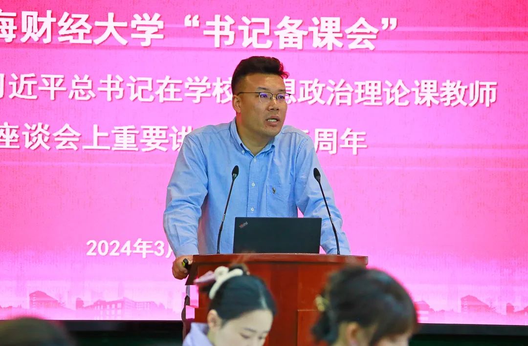 为纪念习近平总书记在学校思想政治理论课教师座谈会上发表重要讲话五周年,3月14日上午,上海财经大学举行了一场别开生面的“书记备课会”。校党委书记许涛,常务副校长徐飞,教务处处长朱小能,党委教师工作部部长杨乐,党委学(研)工部部长、团委书记沈亦骏,教师发展中心主任杨楠,法学院党委书记罗山鸿,基础教育集团主任王晓露、副主任高冰冰,党委宣传部副部长施蕾出席会议,马克思主义学院全体思政课教师及校附属中小学的教师代表参加备课会。会议由校党委常委、宣传部部长、马克思主义学院党委书记曹东勃主持。
