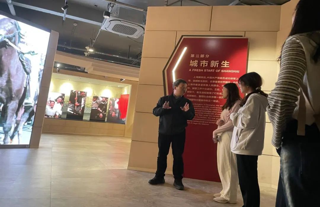 在纪念上海解放和全国解放战争胜利暨新中国成立75周年之际,2024年5月12日,来自2023级的近150名本科生,在马克思主义学院中国近现代史纲要教研室主任韩炯,李灵玢、刘凝霜老师的带领下,走进上海解放纪念馆,开展实践教学活动,开启一段难忘的党史学习教育之旅。