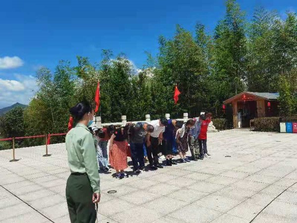 随后,到达松毛岭瞻仰红军无名烈士墓,现场聆听当年的革命战争事件过程。松毛岭是中华苏维埃共和国中央政府和福建省苏维埃政府的“东线门户”,守住松毛岭,就等于守住了中央苏区的东线阵地。1934年的松毛岭战役是中央红军长征前东线的最后一仗,是保卫人民群众利益,捍卫红军尊严的一场神圣战役,为中共中央首脑机关和中央红军主力实行战略大转移赢得了宝贵的时间;同时也是一部可歌可泣、惊天地泣鬼神的英勇悲壮的史诗。当地群众自发修建了红军墓,敬仰、缅怀当年牺牲的上万名红军将士。这段艰苦惨烈又自强不息、百折不挠、团结精进的历史深深打动了在场的师生。