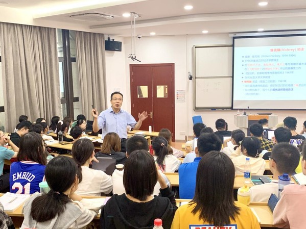2021年9月14日下午,《经济中国》系列专题讲座第二讲顺利举行。该讲座以《拍卖博弈理论启示》为主题,由上海财经大学常务副校长徐飞教授为经济学院大一新生讲授。本次课程由马克思主义学院章忠民院长主持,马克思主义学院刘光锋教授、邬璟璟老师等马院老师和同学旁听了此次课程。