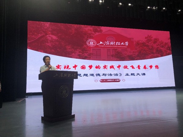 在上课之前,马克思主义学院院长、思修教研室《思想道德修养与法律基础》课主讲老师章忠民教授也来到现场,为本次主题大课致辞。他讲到,实践是马克思主义的第一观点,同学们不能将自己的眼界与思想限制在象牙塔里,要走出学校,把论文写在祖国的大地上。这次主题大课就为同学们提供了这样一种契机,相信同学们一定能够有所启发,在奋发攻读的同时,将自身所学投入到中国特色社会主义建设的伟大实践当中去。