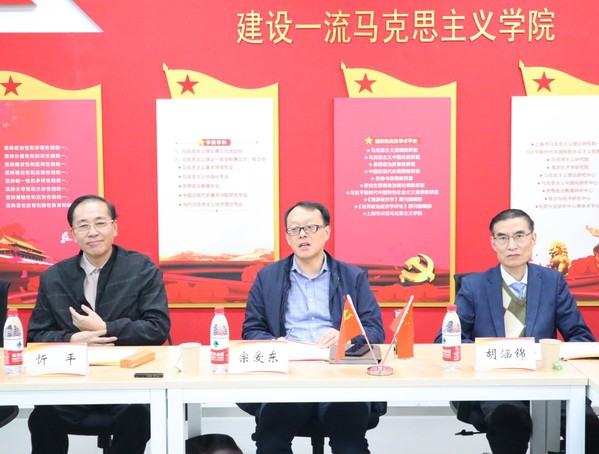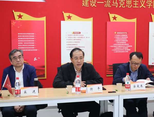 作为会议承办方,我院院长章忠民教授率先从课程设置、硕博士专业课开设、师资配备、学校支持等方面向来宾们简要介绍了我校开设“习近平新时代中国特色社会主义思想概论”课的基本情况和工作亮点。