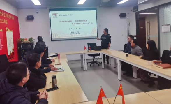 2021年11月23日下午,上海财经大学马克思主义学院近现代史纲要教研室主任韩炯老师,在科学实验大楼1326室做《总结历史经验,筑牢信仰根基——驳南京政权“黄金十年”说》专题讲座。讲座由院长章忠民教授主持。