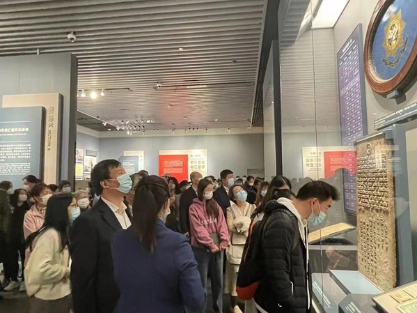 同学们依次参观各主题展区,凝望珍贵的文物,每一件背后都有感人的故事、鲜活的细节,都承载着我们党从弱小逐步发展壮大、经历腥风血雨而一次次绝境重生、在攻坚克难中迎来一个又一个胜利的厚重历史。大家认真观看一件件历史文物、一幅幅珍贵照片、一段段文字史料,听取讲解,体会文物的历史深义。