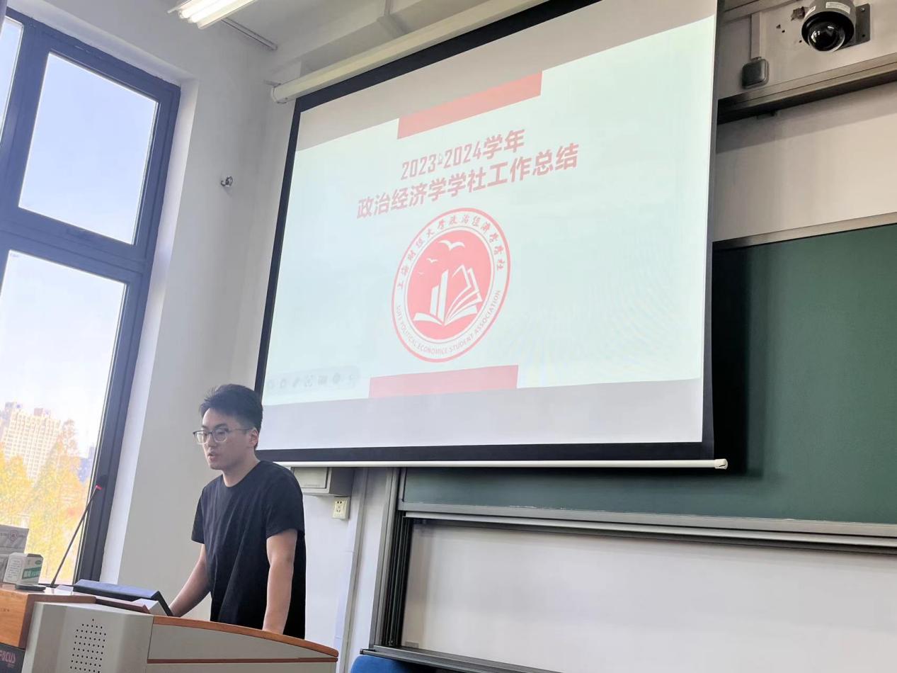 本次大会由研会主席葛通同学主持。大会第一部分由研会、新青社以及政经社负责人依次上台发言,对2023-2024年学生工作进行了述职报告。