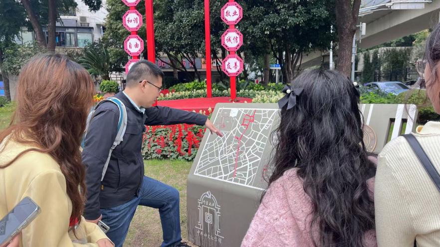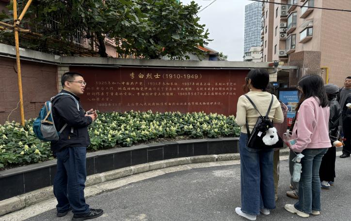10月20日上午,马克思主义学院党委副书记姜国敏老师带领十余名2024级新生在虹口区四川北路历史街区开展“行走的思政课”,共同聆听这里的名人故事和红色故事,追寻革命先烈和文学家的足迹。