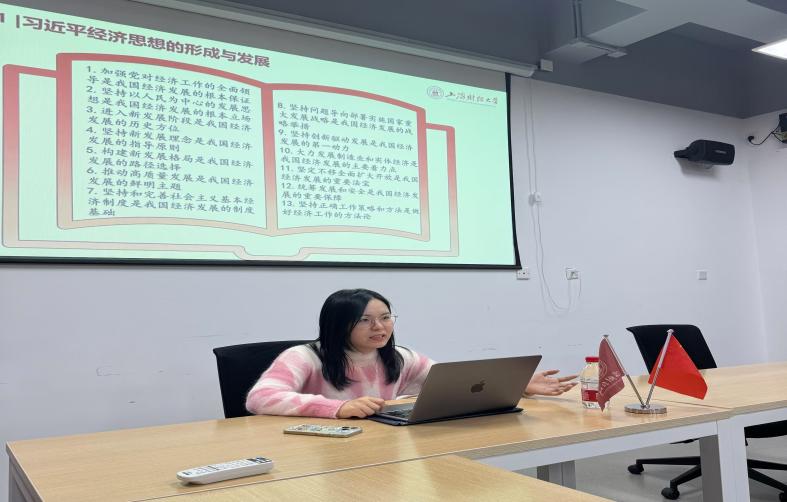 10月27日下午,马克思主义学院政治经济学社以《迈向现代化强国的发展密码——习近平经济思想的精髓要义》为主题,在科研实验大楼1326室成功举办本学期第一次学术讲座。本次活动由上海应用技术大学讲师余凯月老师主讲。
