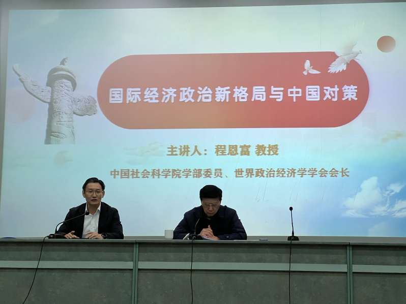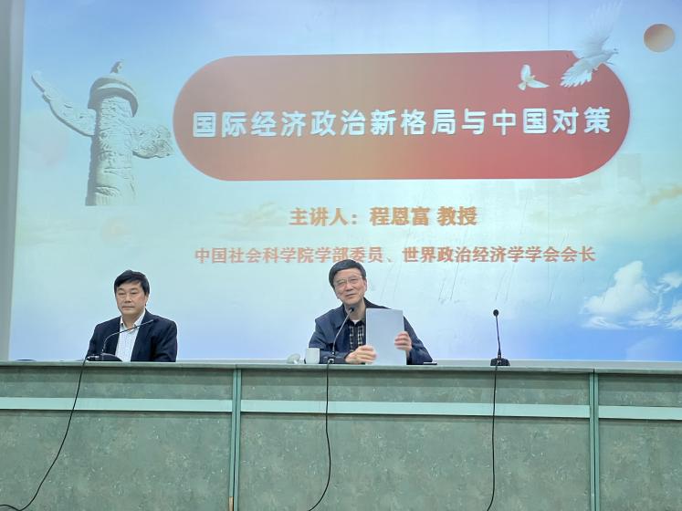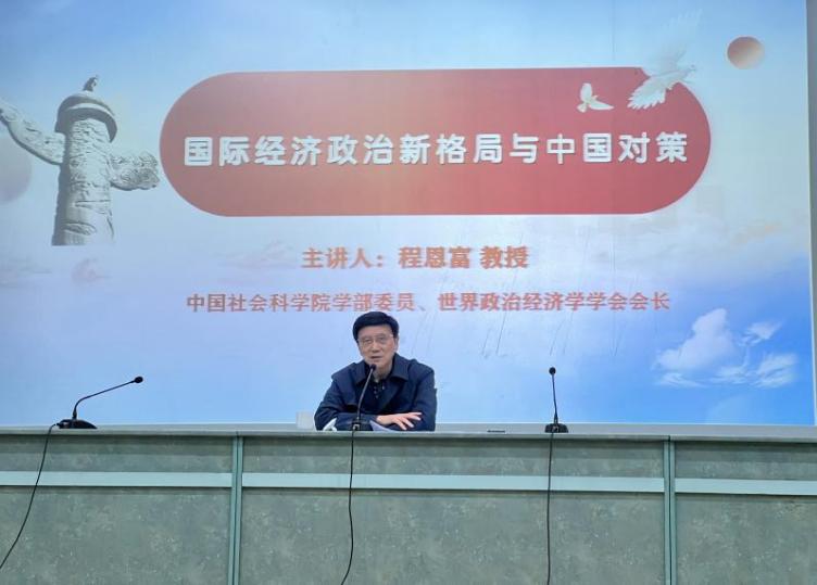 2024年10月29日下午,上海财经大学马克思主义学院特邀教授、中国社会科学院学部委员,世界政治经济学会会长程恩富教授为上财学子所作的题为“国际经济政治新格局与中国对策”的学术报告。报告由上海财经大学马克思主义学院常务副院长丁晓钦教授主持,《中国马克思主义与当代》思政课教师及200余名在校博士生共同聆听了一堂生动且富有深度的思政大课。