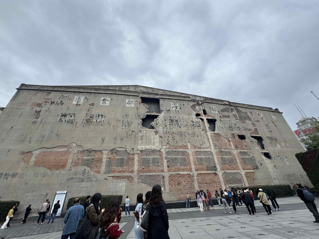 今天我们来到了四行仓库会址纪念馆,站在馆的西墙外,内心感到深深的震撼,一处处枪眼,一处处疮痍,无一不控诉着日本侵略者的罪行,无一不警示着我们铭记历史,勿忘国耻,振兴中华!