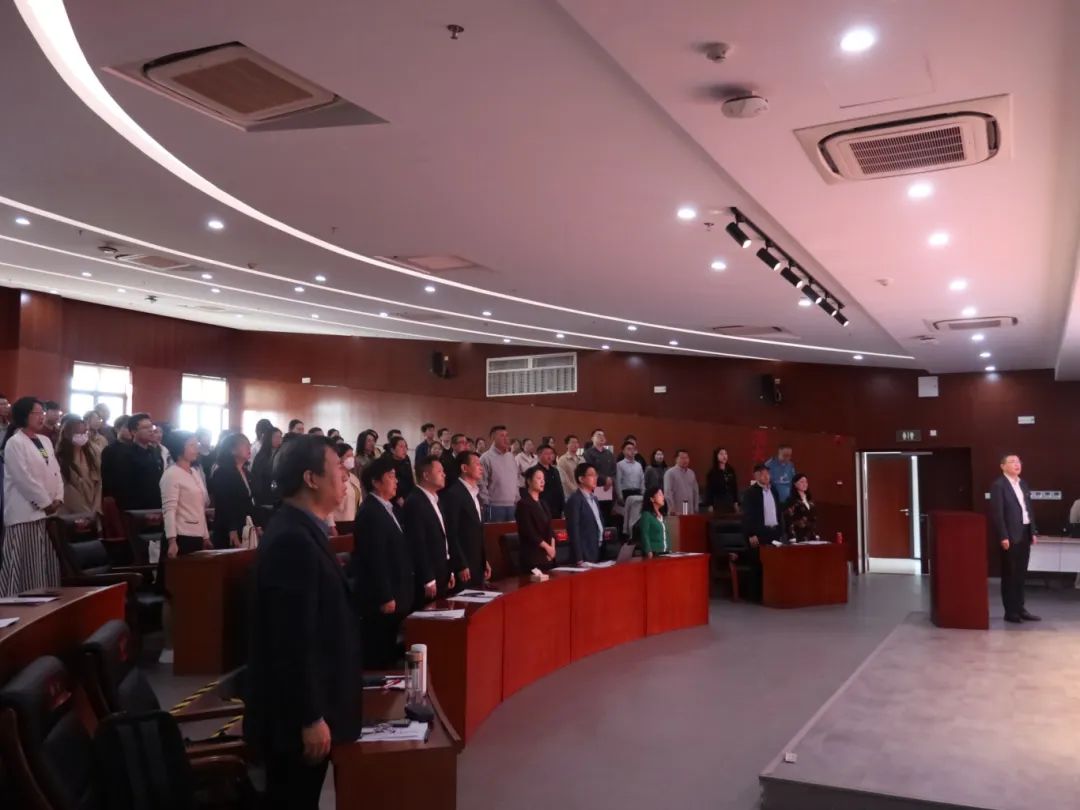 大会在庄严的国歌声中拉开序幕,全体参会人员起立,奏唱国歌。