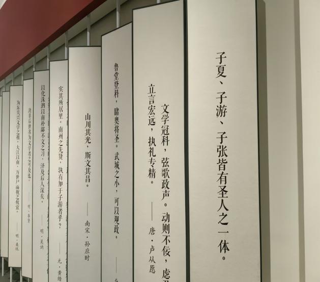 上午10点30,实践教学团队来到了奉贤的新文化坐标——言子书院。言子书院是一个具有复合性功能的文化展览建筑,是奉贤博物馆一体两翼的重要构成,于2023年9月开始启用,通过构架水庭、绿囿、文院和贤厅等空间序列,集博物展览、教学书院、学术交流功能为一体。走进书院,同学们被言子的巨大雕塑吸引,沿着礼仪广场,经过见贤前庭、思齐水院,最终到达贤人厅,仿佛还原了圣贤言子南下传道授业之路,每一处都充满了“和润”的文化韵味。在馆内,同学们了解了言子的生平事迹和奉贤的由来史,许多同学表示,书院激发了他们对个人学习修身的更高追求,要将其教育智慧和人文精神融入到自己的生活中,为推动中国传统文化的繁荣发展贡献力量。