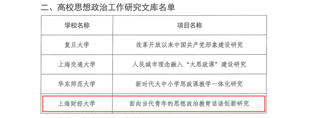 近日,中共上海市教育卫生工作委员会、上海市教育委员会公布2025年度上海高校“时代新人铸魂工程”培育项目入选名单,我院2个项目入选。具体名单如下: