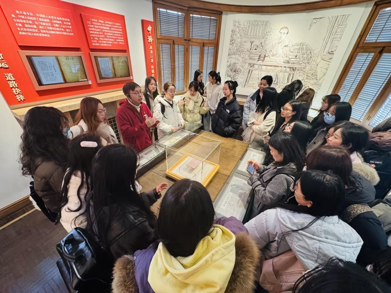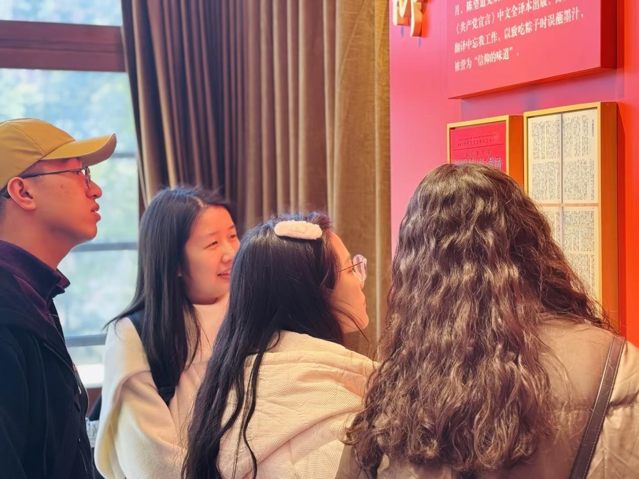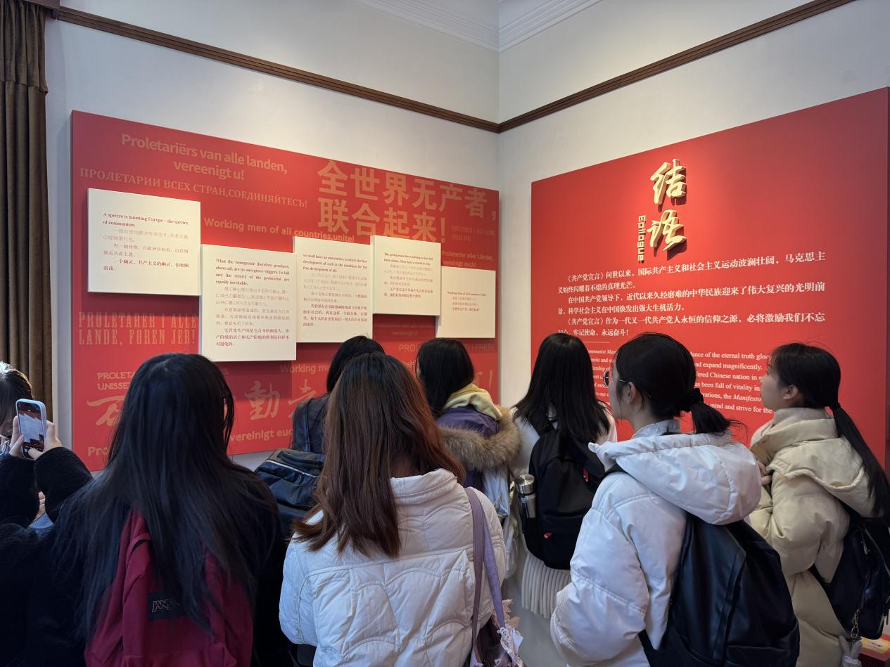 在参观过程中,同学们认真聆听讲解,不时驻足思考,并积极交流心得。大家一致认为,这次参观让他们更加深刻地认识到《共产党宣言》不仅是一本书,更是一面旗帜,指引着一代又一代中国共产党人不断前进。最后,周杰老师提出殷切希望:希望同学们在未来的学习、生活和工作中积极将马克思主义的基本原理同中国具体实践相结合,为在新时代推进马克思主义的创新发展贡献自己的青春力量。