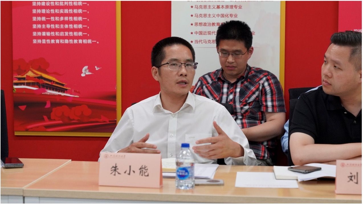 座谈会结束后,许涛书记召集参会教师随即展开进一步调研座谈。他对马克思主义学院领导班子和思政课教师提出三点要求:一是重点提升教学质量,提高学生听课效率,提高学生课堂获得感,实现课堂教学理论与实践的统一;二是要不断学习和提升教学方法,要将每一堂思政课打造成“有情怀”、“有温度”的思政课,要用学生关心的家、国、身边事和学生喜闻乐见的方式来把大道理讲深讲透;三是要不断丰富课堂教学形式,不拘泥于按部就班“满堂灌”式的教学方式,要利用好学校校史馆的资源,同时要将社会实践大课堂与思政课小课堂结合起来。思政课改革创新必须要敢于尝试创新教学方法,可以通过翻转课堂的授课形式,让思政课本中高深的理论知识与鲜活的现实生活充分融合,灵动地呈现在全校同学面前。