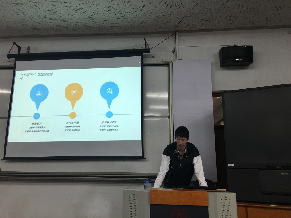 笑眯眯的张子霖同学是桐城定点团队的队长,他着重做了“千村调查的经历与感想”的分享。在分享中,他先从“为什么参加千村?”“怎样参加千村?”的问题出发,向同学们详细介绍了千村调查项目以及项目开展的流程,包括学生报名、面试选拔、组队、任务分配等。后他又着重向同学们描述了“参加千村,究竟是怎样一种体验?”。在他看来,首先是深入中国农村带来的震撼,贯穿在绿色田野里的“银蛇”,鳞次栉比的小洋房让他看到了农村的巨变,青山绿水,蓝天白云更是让他感叹祖国的大好山河。不仅如此,他还通过向大家分享团队参观桐城市电商产业园、农夫商城等地的照片展现桐城市电商平台的快速发展;其次是实践中所获得的成长,作为桐城定点的队长,他身上肩负着更大的责任,小到队旗的保管大至团队微信公众号的运营,工作虽累,但收获远不及此;最后是调研中收获的感动,当地政府、乡镇、联系人及村干部对此次调研的热情协助和支持,当地农民淳朴与善良、积极配合都给他留下了深刻的印象。 二、关注县域电商发展助力农村精准扶贫 千村调查的目的不只是开展社会调研,最重要的是带领同学们深入农村,了解国情,引导同学们在专业学习的基础上,结合实践,进一步地探索与发现。郑子凡同学在千村调查后对农村电商平台发展和电商扶贫这两方面的内容产生了浓厚的兴趣,在实践过程中不断向村干部提问、向当地电商平台的主要负责人学习,收集了第一手的资料,回学校后,更是根据调研实践,撰写了8000余字的的调研报告。