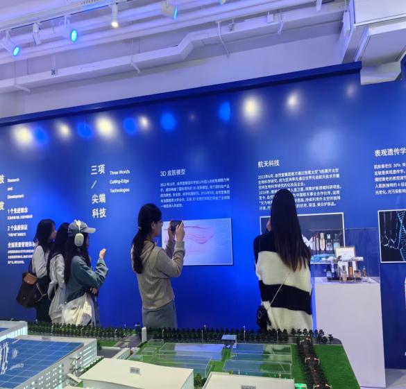 下午13点15,实践教学团队来到自然堂集团奉贤基地。自然堂,2001年创立于上海,以天人合一的中国哲学思想为基础,倡导乐享自然,美丽生活的理念,针对中国人的文化、饮食和肌肤特点研制,甄选珍稀天然成分融合先进科技,致力于为中国消费者提供更好更专业品质的产品和服务,积极参与高质量发展的伟大建设。在基地中,工作人员带领同学们参观了自然堂集团旗下的各支产品线的发展,同学们还试用和了解了自然堂品牌旗下的各个产品,观看了自然堂集团风险基地的生产车间,帮助同学们领略奉贤新城数字化转型的宏伟战略,了解到数字化管理对于生活品质的提升。