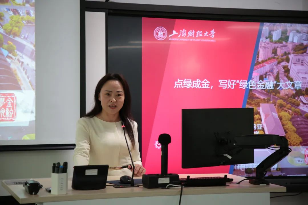 通过回顾我国改革开放历程,不难发现,金融建设始终是党和国家发展的重要工作之一。随后,刘莉亚老师走上讲台,以“点绿成金,写好‘绿色金融’大文章”为主题,把同学们的思绪从“历史”引入“现实”。结合2024《政府工作报告》《关于进一步强化金融支持绿色低碳发展的指导意见》等重要政策文件,同时通过介绍绿色信贷、资本监管的绿色缺陷、绿色债券、碳金融、生物多样性金融等丰富的金融实践案例,刘莉亚老师从“绿色成为新质生产力的底色”“绿色金融发展面临的关键问题”“政策协调配合支持绿色发展”三大方面,强调金融是国民经济的血脉,可以起到与政府财政投入互补的作用,绿色金融可以和财政支持手段协调配合共同推动经济社会可持续发展,由此引导同学们了解最新的理论成果,丰富拓展学习维度。最后,刘莉亚老师鼓励同学们把专业学习、职业选择、人生理想与党和国家的重大战略相结合。