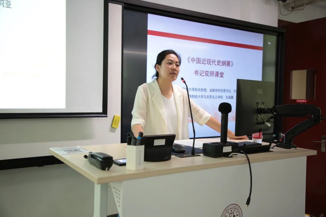 6月14日上午,校长助理、金融学院党委书记刘莉亚老师走进二教101教室《中国近代史纲要》的课堂,与马克思主义学院刘凝霜老师双师同堂、共同授课,为同学们带来了一场“历史连接现实”的精彩内容。