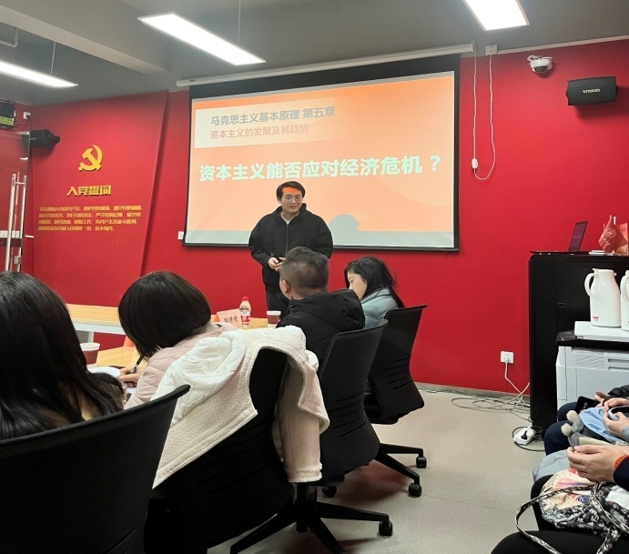 本次备课会首先邀请我院青年教师、第五届上海高校青教赛特等奖获得者张鋆老师作课程教学展示。张鋆老师以“资本主义能否应对经济危机?”为题进行了课程教学展示。华东师范大学马克思主义学院闫方洁教授对课程展示进行了深入细致的点评。