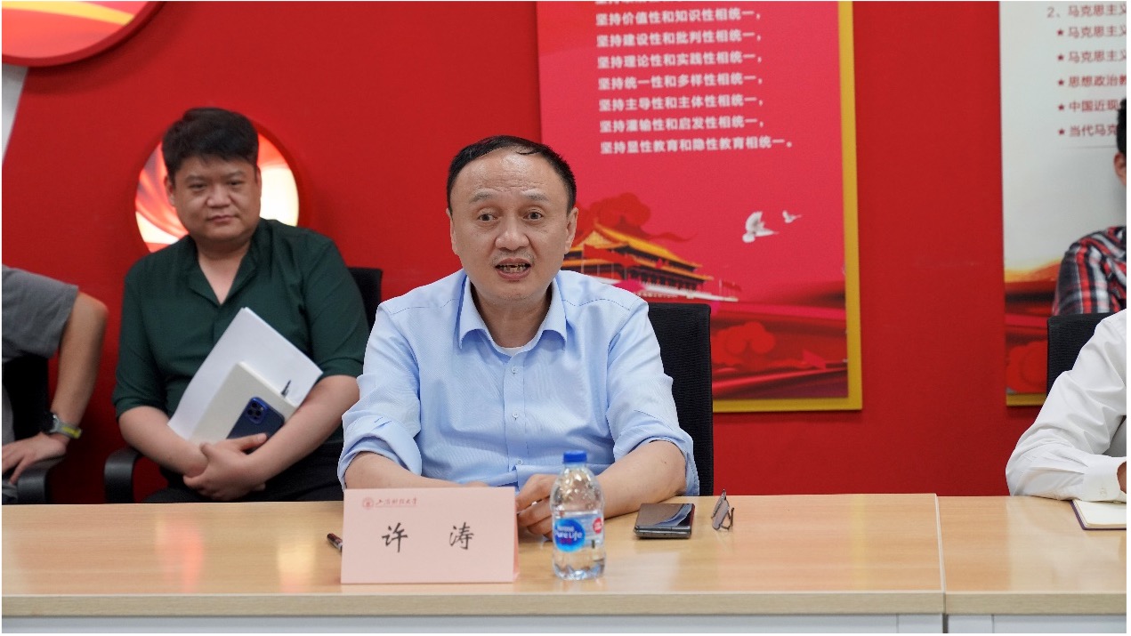 座谈会结束后,许涛书记召集参会教师随即展开进一步调研座谈。他对马克思主义学院领导班子和思政课教师提出三点要求:一是重点提升教学质量,提高学生听课效率,提高学生课堂获得感,实现课堂教学理论与实践的统一;二是要不断学习和提升教学方法,要将每一堂思政课打造成“有情怀”、“有温度”的思政课,要用学生关心的家、国、身边事和学生喜闻乐见的方式来把大道理讲深讲透;三是要不断丰富课堂教学形式,不拘泥于按部就班“满堂灌”式的教学方式,要利用好学校校史馆的资源,同时要将社会实践大课堂与思政课小课堂结合起来。思政课改革创新必须要敢于尝试创新教学方法,可以通过翻转课堂的授课形式,让思政课本中高深的理论知识与鲜活的现实生活充分融合,灵动地呈现在全校同学面前。