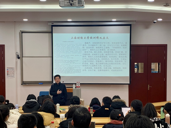 2022年2月22日下午,上海财经大学马克思主义学院院长章忠民教授在国定路梯一教室以《全面深化改革,新时代中国改革的顶层设计》为主题,讲授《经济中国》第五季第一讲。此次课程由马克思主义学院邬璟璟老师主持,马克思主义学院部分师生旁听了此次课程。