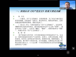 辛向阳研究员主要围绕“习近平与《共产党宣言》”“深刻认识《共产党宣言》的重大理论贡献”“深刻认识《共产党宣言》对世界社会主义产生的深远影响”“坚持《共产党宣言》的科学原理和科学精神”这四个问题展开。报告内容高屋建瓴、深入浅出,主题鲜明、内容丰富,将深厚的理论与生动的实践紧密联系起来,为参会师生带来一场知识饕餮盛宴,赢得在线师生的热烈反馈。