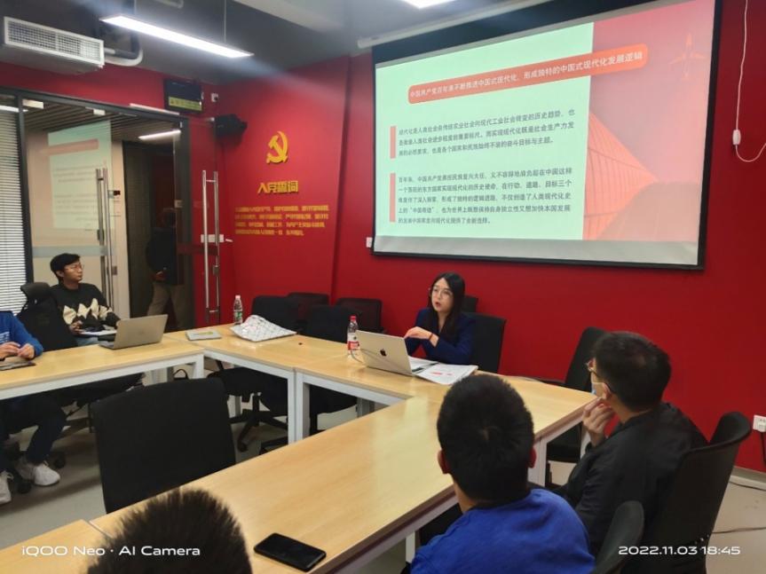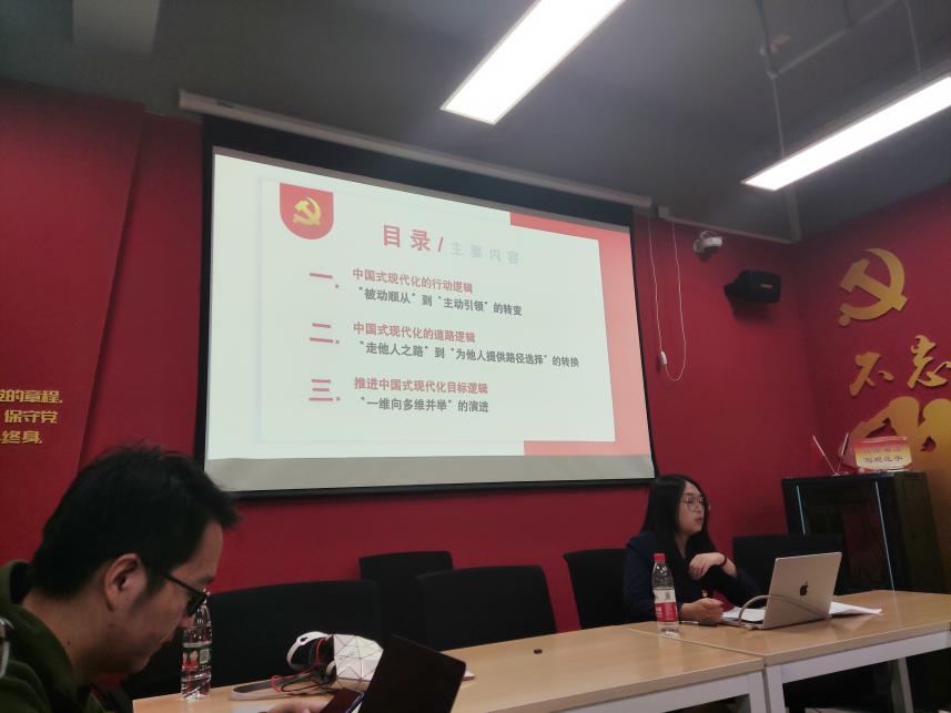 为更好学习、宣传、贯彻党的二十大精神,2022年11月3日下午,马克思主义学院政治经济学学社在国定路校区科研实验大楼1318会议室成功举办了本学期的专项活动。本次专题讲座邀请上海理工大学马克思主义学院张芷寻老师为同学们作“学习党的二十大报告:中国式现代化的三重逻辑”学术讲座。