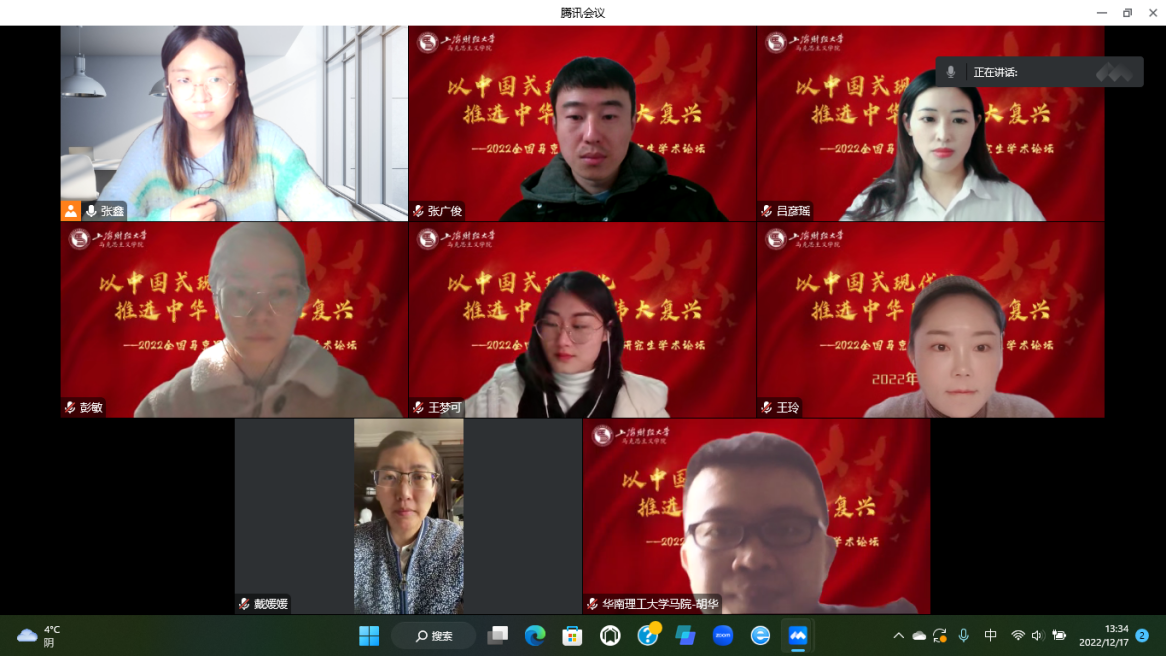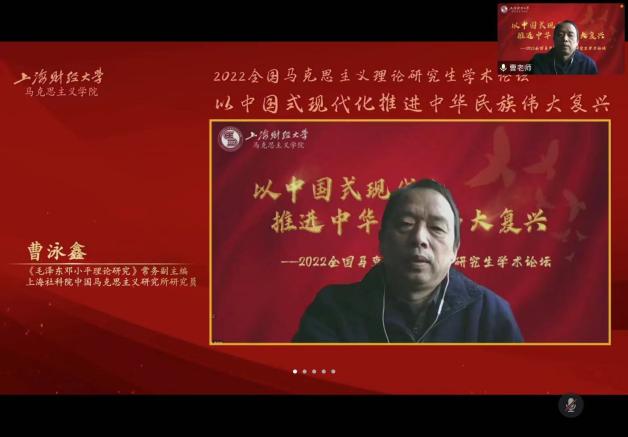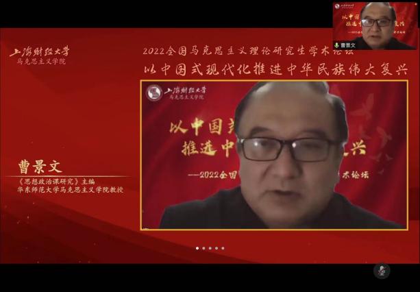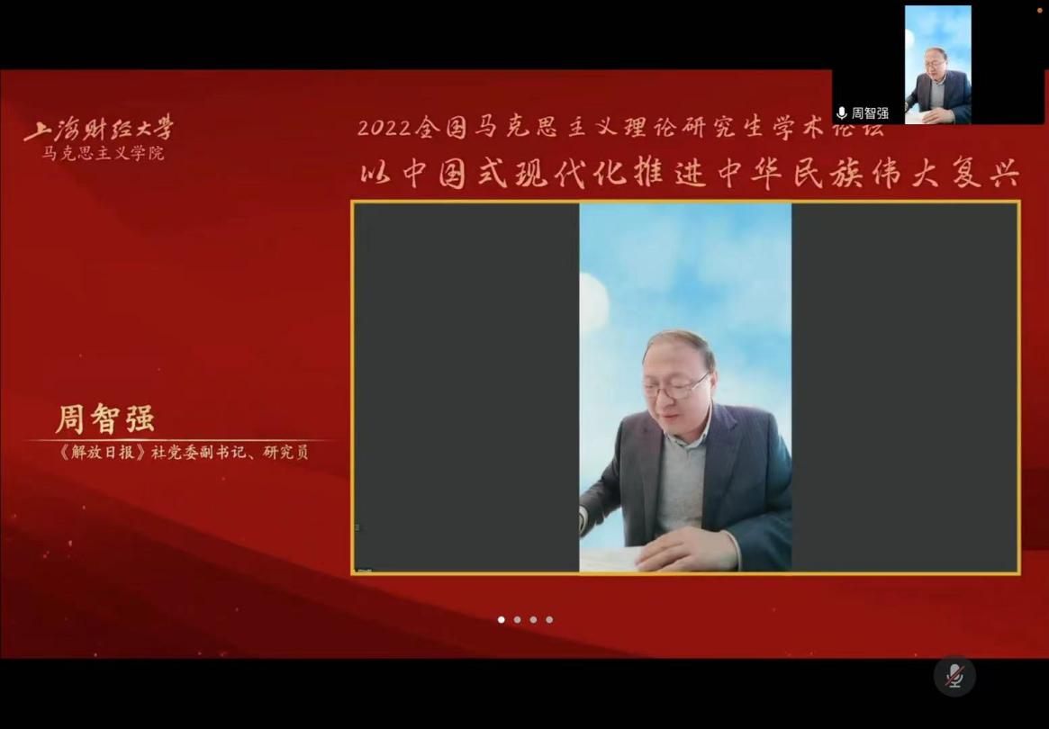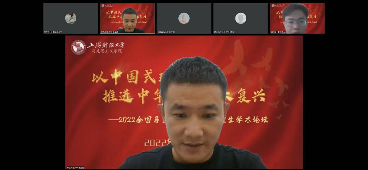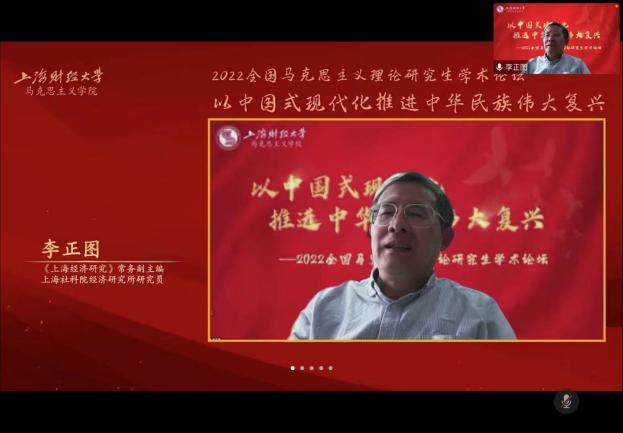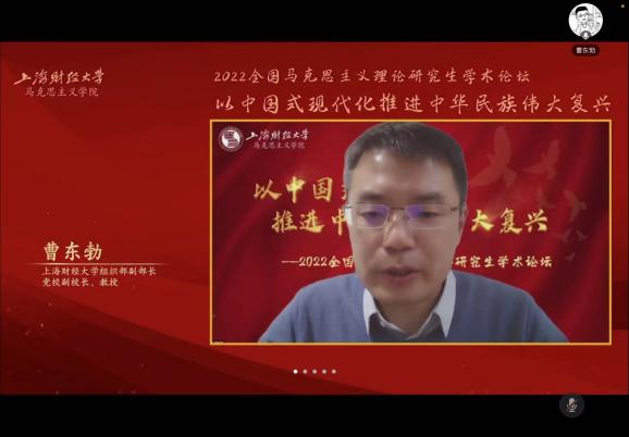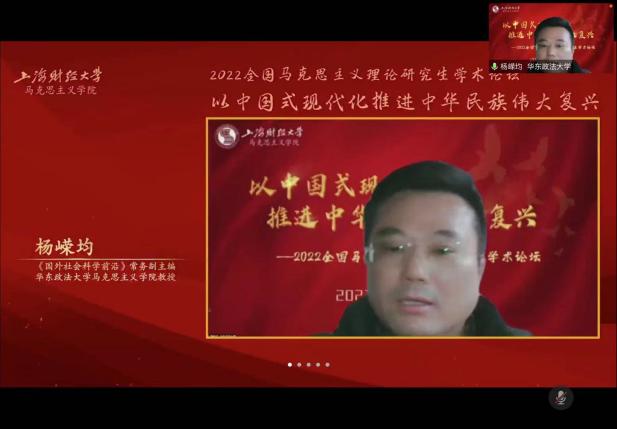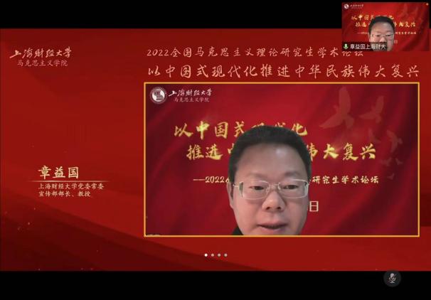 2022年12月17日,由上海财经大学马克思主义学院与《海派经济学》《政治经济学研究》编辑部联合举办的“2022年全国马克思主义研究生学术论坛‘以中国式现代化推进中华民族伟大复兴’”在云端成功举行。来自复旦大学、中国人民大学、上海交通大学、华东师范大学、浙江大学、山东大学、南京大学、中共中央党校、上海财经大学等单位的师生参会。会议以腾讯会议与直播的形式进行,近2000人次收看了会议。