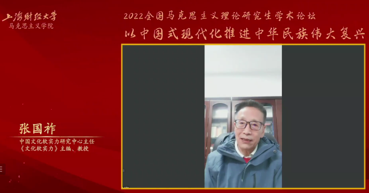 中国文化软实力研究中心主任张国祚教授作了题为《谈谈中国式现代化对西方现代化的超越》的报告。他从时间维度、空间方位和超越维度提出了理解中国式现代化的三个层次,并认为中国式现代化为人类发展和世界进步提供了一种智慧和方案,但各个国家应选择适合本国国情的现代化道路。