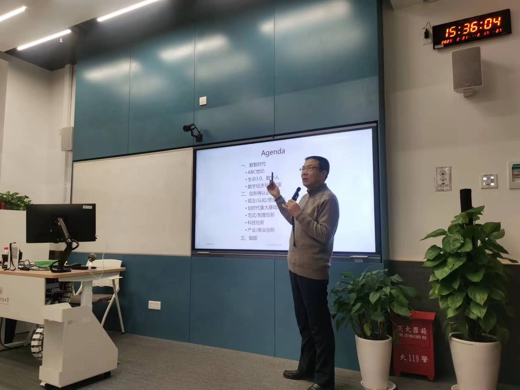 2023年2月21日,上海财经大学常务副校长徐飞教授在科研实验楼B103以《数智时代的赋能创新》为主题,向同学们讲授《经济中国》第七季第一讲。本次课程由马克思主义学院邬璟璟老师主持,马克思主义学院书记曹东勃教授和副院长刘洋副教授出席并旁听本次精彩课程。