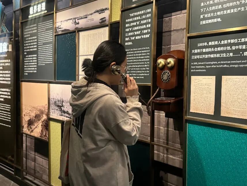 社员们还通过馆内互动电话设备,聆听老上海的历史声音,在英语与上海话的交替讲述中感受城市记忆的温度,体会外滩作为“开放开发、海纳百川”熔炉的独特气质。