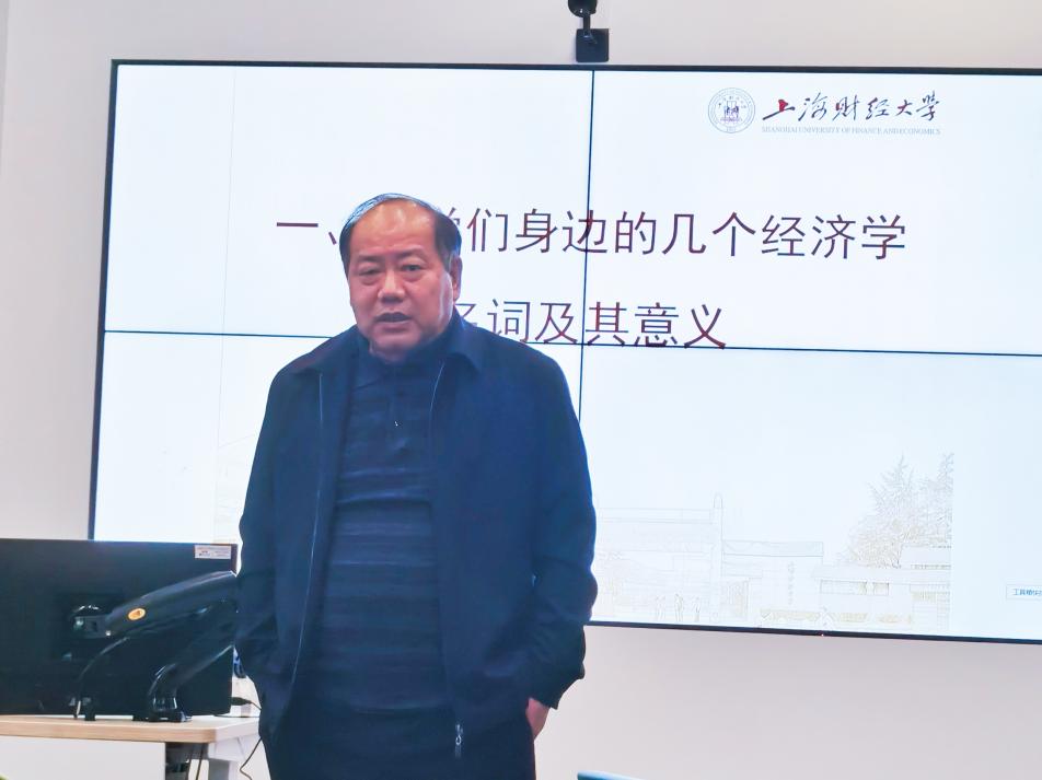 2023年2月28日,上海财经大学党委副书记朱鸣雄教授在科研实验大楼301室以《同学们身边的经济学》为主题,向同学们讲授《经济中国》第七季第二讲。此次课程由马克思主义学院邬璟璟老师主持。