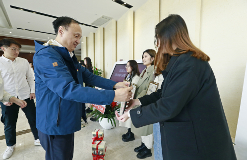 2月28日,学校举行首届“思政学习先锋”颁奖仪式。校党委书记许涛为获得“思政学习先锋”荣誉称号的同学们颁奖。