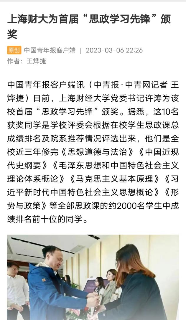 在上海财经大学,这门课学好了,校党委书记给发奖