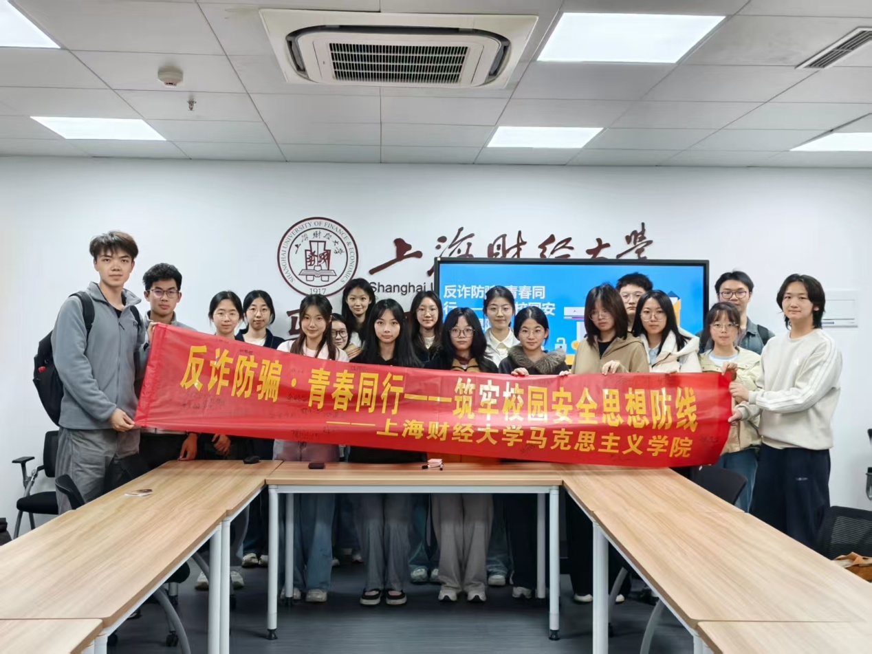 为切实提升大学生反诈防骗意识与能力,筑牢校园安全思想防线,有效防范电信网络诈骗,守护学生财产安全与身心健康,2026年4月14日下午,马克思主义学院本科学生会在学院205会议室,面向全体本科生开展“反诈防骗·青春同行”主题反诈宣传活动。本次活动由青志部主办,集情景互动于一体,形式新颖、参与度高,有效提升了同学们识诈、防诈、拒诈的能力,为建设安全、清朗、和谐的校园环境注入了青春力量。